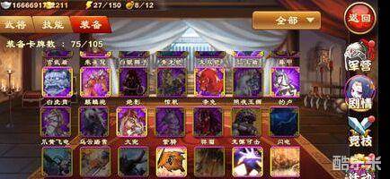武器:一等有方天、关刀、朱雀羽扇、连弩、龙胆。二等有丈八、倚天、雌雄、菊花刀。三等有青釭、贯石、麒麟弓、寒冰剑。