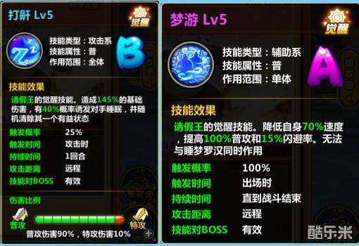 所以请假王可以做到敌人敌人虽然速度快,但是很难打到你,就算偶尔命中还会被寒冰盾抵挡,最后艰难打死,又复活。而请假王在梦游的支持下基本上3-4下消灭对手!