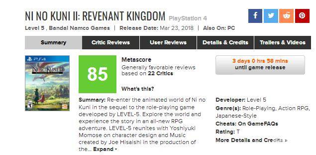 《二之国2:亡灵国度》将于3月23日发售,今天国外许多媒体的评分出炉,普遍分数都比较高。
