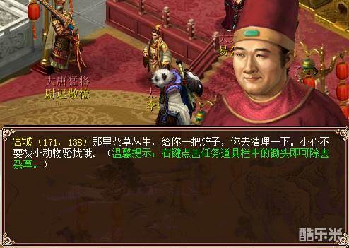 (1)玩家找易公公领取任务,得到提示到皇宫的某处锄草。