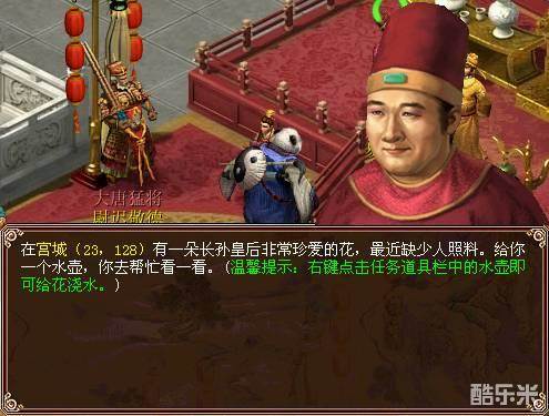 (1)玩家找易公公领取任务,得到提示到皇宫某处替长孙皇后照顾花草。