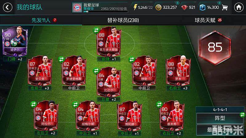 首先在《FIFA足球世界》中,进入我的阵型当中,选择4-1-4-1阵型。