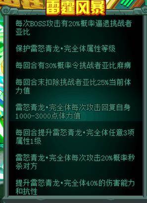 挑战模式:每轮挑战将随机抽取八卦中的风暴作为战场效果,每次挑战后不消失,这也就意味着不氪金的情况下最终我们必须面对满状态的青龙。