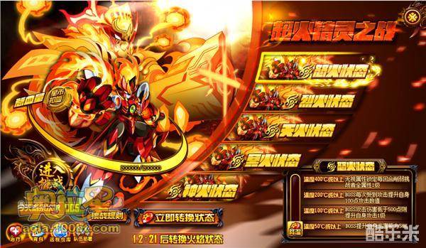 天焰菲尔·完全体过关策略:龙王敖兴开场使用奥义技能[灵魂崩坏]使菲尔属性提升时被快速削弱(这里说明一下,龙王可以放在首位使用奥义,也可以等辅助削弱菲尔后再上场使用奥义,主要效果都一样),然后切换冰雪女皇自爆,削弱菲尔全属性,如果有大帝和森林女皇的,可以先上女皇增加体力上限,然后大帝自爆,增加主攻宠物的全属性,没有的话,直接切主攻宠物,无脑大招即可。