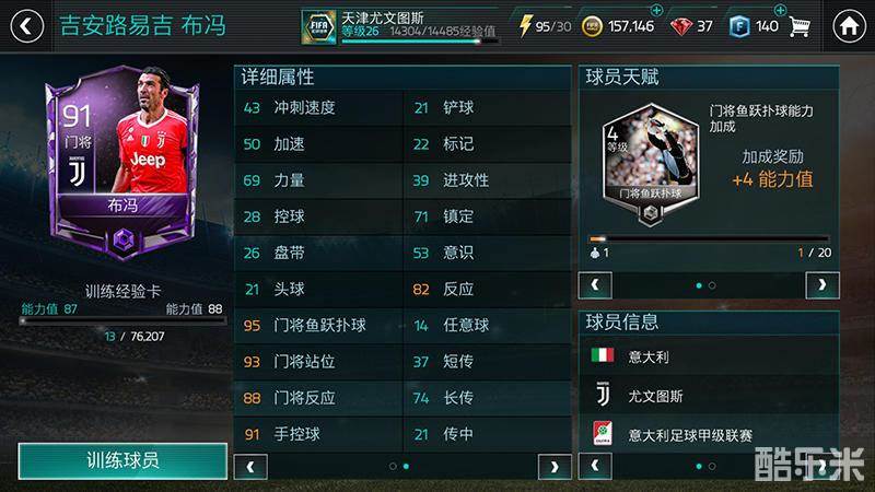 尤文图斯:布冯,我是在开区后充了两个648,正好有个金币福袋买金币,6000点卷可以买30个组合包,当时给了15万金币去市场收了能力值78-79黄金球员卡。