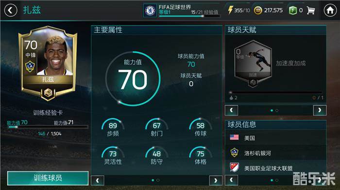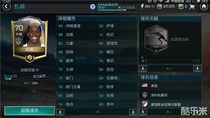 从此版本扎兹的球员属性面板上我们不难看出,他在速度这个属性上表现最优异,均达到了89,可见扎兹这张卡是以速度为见长的球员卡,手感用起来也很柔和,做马赛回旋等花式动作还是很好用,灵活性高达73,对抗能力只能算是及格水平,体格属性75,虽然射门属性只有67,但是在新手阶段门前的把握能力还是不错的,堪称新手比赛获胜的法宝!