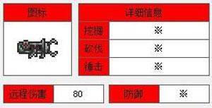 可从NPC机器人处35金购买,还会出售一号导弹,二号导弹(血月出售),三号导弹(晚上出售),四号导弹(日食出售),这四种导弹都可以当做子弹!