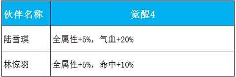 雪琪觉醒4会增加20%的血量,对于输出来没什么效果,生存能力增强了不少。而惊羽则是会增加10%的命中。本来惊羽的命中就比雪琪高一点,现在就更高了。有了10%的命中加成,在面对一些闪避比较高的单位,例如书书或者天音都会有更好的表现,伤害更加的稳定。