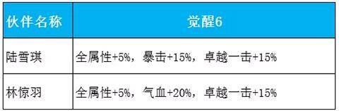 这里雪琪扳回一局,增加15%的暴击属性,相当于提升了15%的伤害输出,还是很给力的。惊羽在觉醒6的时候终于不是小脆皮了。生存能力增强许多。