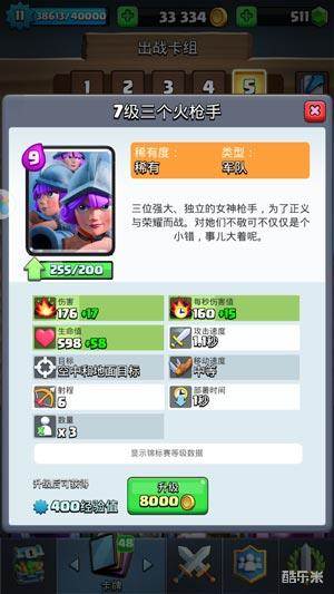 [皇室战争解场课堂]三个火枪手怎么解?如何对付三枪?三个火枪手是高阶竞技场中经常出现的卡牌,这是一张7阶竞技场解锁的稀有卡牌,它的灵活性很高,既可以沉底下等费进攻也能桥头下发起强攻,还能中置引兵防守,每种情况的进攻强度都不同,所对应对解法也有不同。