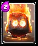 烈焰精灵(备注:楼主后面会叫它小火球)是游戏中唯一的一张低费群伤军队。如果速转卡组里缺少一个群伤军队,小火球是一个不错选择。(但是蓝胖子一般会抢风)然而它的使用率简直惨不忍睹。炸弹塔比它的使用率都高!心疼小火球3秒钟!这张卡的输出也和炸弹兵差不多:会让你大跌眼镜。(详情请见炸弹兵篇)三个全撞到的话黄毛就残血了。官方似乎觉得这张卡很平衡,所以便没做更多修改。
