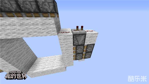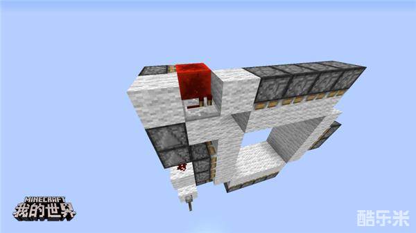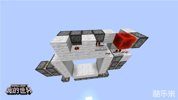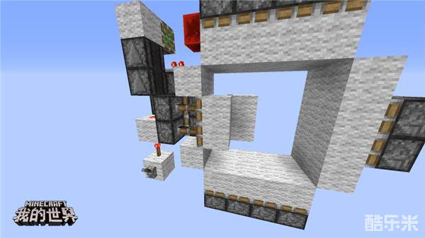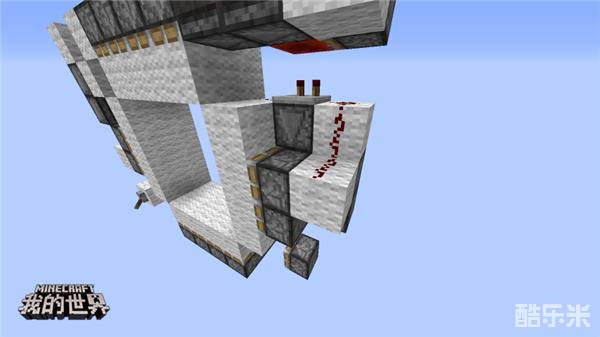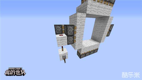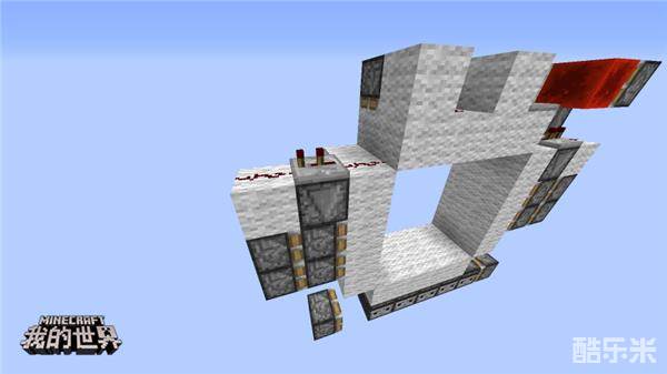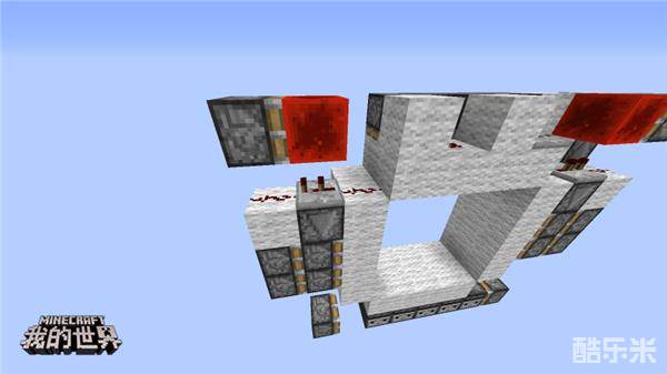 如图放置粘性活塞和红石块,稍后将用于激活二段递归
