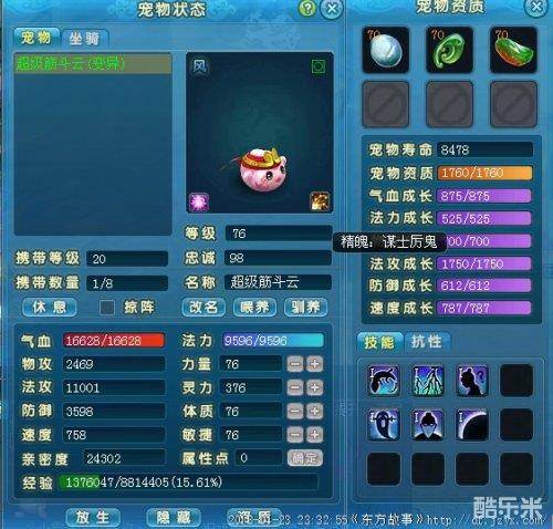 技能方面建议保留 再生 群法 冥思 因为单法和追击对于法宝宝来说用处真心不大!