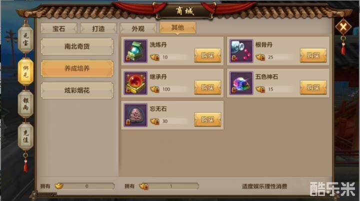 4、可以购买到增加人物经验的天灵丹,增加珍兽经验的地灵丹。清洗杀气的清心丹。珍兽悟性和技能继承用的继承丹。橙色镖车的运镖令珍兽培养的一些材料,还有一些配培养的丹药,其中洗炼丹的作用还是很大的可以给宝宝洗练。