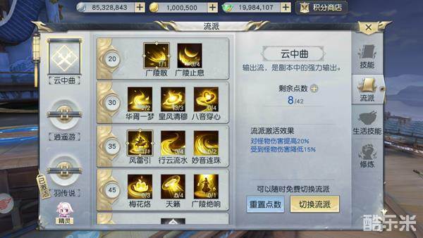 三种形态下,殊音除了外观这种最直白的转变外,职业本身的打法和操作风格也在随之发生转变。人形态“云中曲”流派下,角色攻守兼备,既可以满足对副本怪物的持续高额输出,同时也可以在一定程度上起到降低所受怪物伤害的有效增益。另外,通过天赋的加持,人形态下的殊音可以为敌人叠加上繁多的负面效果,从而间接提升全团的输出能力。比如释放“广陵散”可以降低敌方怪物的物理、法术防御,“风雷引”在造成伤害的同时可以使敌人受到的伤害提高。当我们点出“广陵绝响”的被动时,“广陵散”每集中一次敌人,均可立即刷新敌人身上所有的减防效果。毫无疑问,人形态下的殊音在新资料片中将成为副本开荒团队中至关重要的一员。