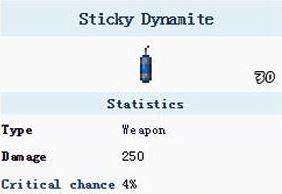 黏性雷管是爆炸性投掷武器,跟其他的黏性爆炸武器一样,它在投掷后不会滚动而是粘住接触的实心物块,除此外其他的性能跟雷管一样。