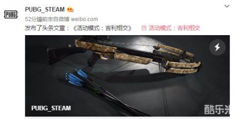 最后编辑于7年前今日,PUBG官方微博发布头条文章《活动模式:吉利相交》,介绍了新模式,只能用十字弩和近战武器来打倒对手。
