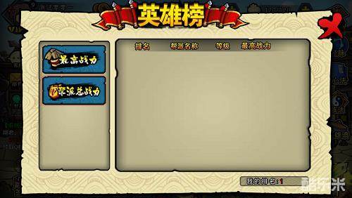 在《一桶浆糊》中也有这样的榜单,在游戏主界面可以查看到有一个英雄榜的图标,点击可以在里面查看个人战力排行榜和帮派战力排行榜。