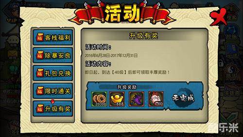新服开启所有进入浆糊的大虾都可以参与冲级活动,在规定时间内,最高角色等级达到40级,即可领取冲级奖励,大量铜钱和888元宝。
