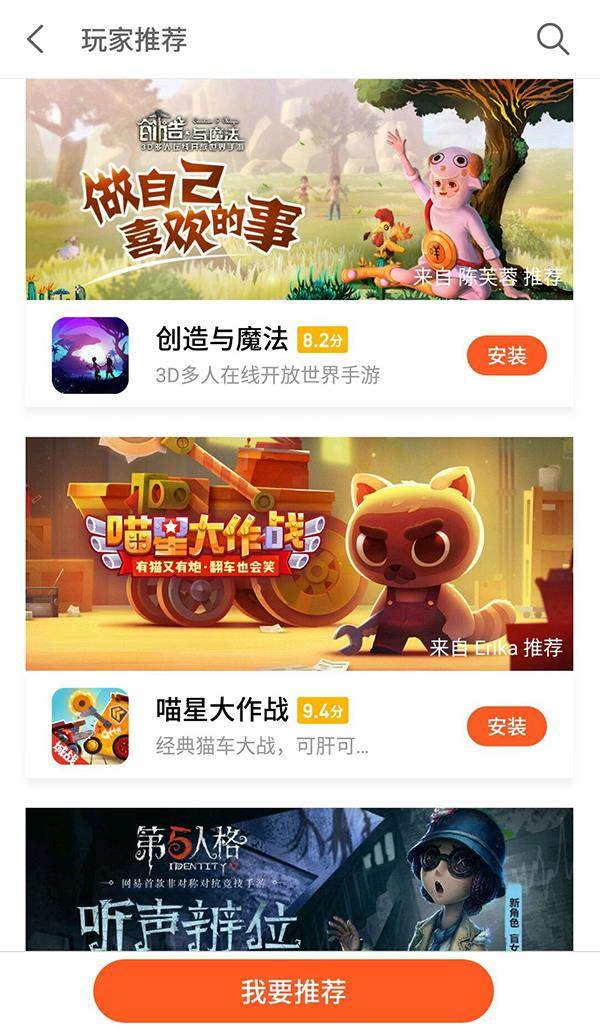 玩到很喜欢的游戏很想大声告诉全世界怎么办,一个由民间高手共同铸就的推荐专区应运而生—— 魅族游戏中心魅玩玩家推荐。在这里你可以为心爱的游戏打call,大声告诉全世界你喜欢它的理由,优质推荐理由还可以扶你上墙。魅族不定期还会抽出一些走心推荐玩家,送出游戏周边!