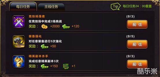 当然,除了经验值,3场竞技场挑战也能带来可观的金钱收入,有钱的地方怎么能错过呢?而完成精英副本所获得的英雄经验卡也是十分诱人,需要注意的是,每日任务会在凌晨12点是重置,所以大家一定要赶在12点之前完成所有的任务喔!