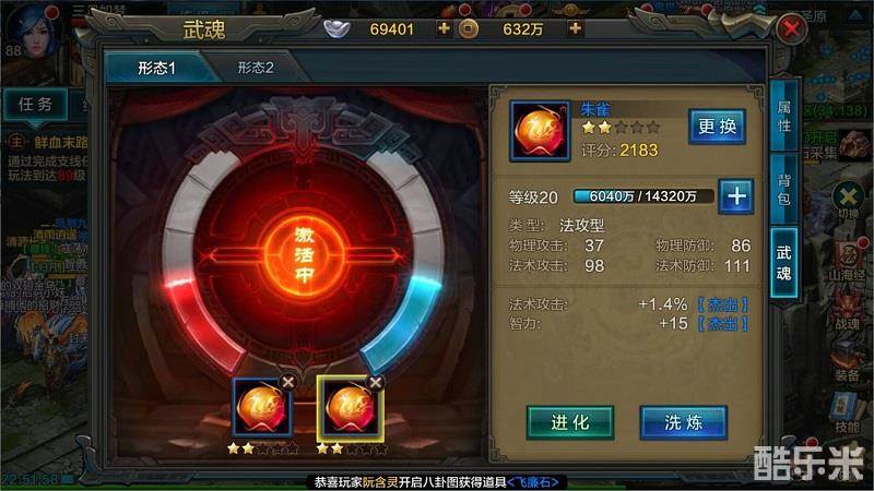 武魂通过做任务或刷怪增加经验,每达到15级、20级、25级、30级时,可通过涅槃进化。除了刷怪和任务升级外,可用铜币购买商城的九黎壶增加武魂经验,这可是武魂快速升级的唯一方法。
