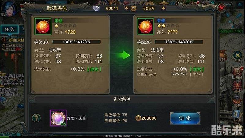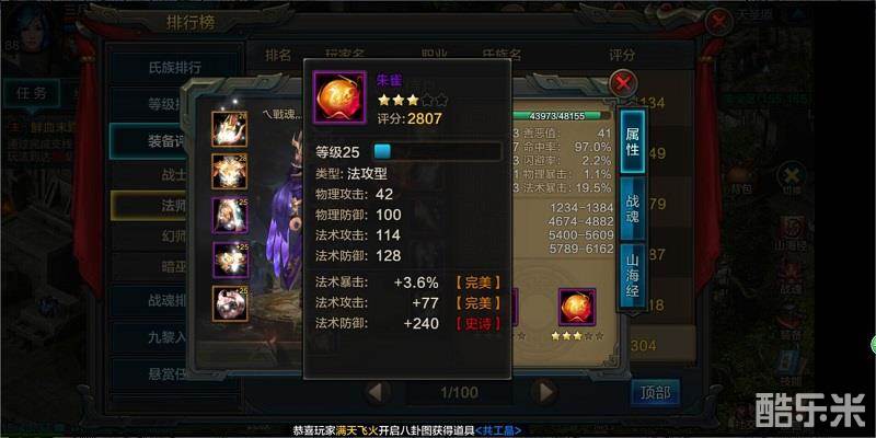 朱雀的附加属性有智力、体制、精神、法术攻击、法术攻击百分比、法术暴击、物理防御、法术防御和生命值上限等。作为输出的角色,当然得追求极致的攻击。推荐法师必有的属性组合为智力+法术攻击+法术攻击百分比+法术暴击。