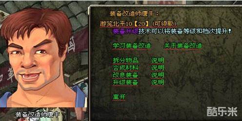 2.在改造师唐牛处,可以分别进行拆分装备、合成材料、改良装备、升级装备。