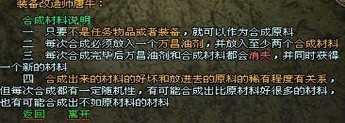 2)合成材料是利用万昌油剂把至少两件材料随机合成,有机率合成出高级的材料。