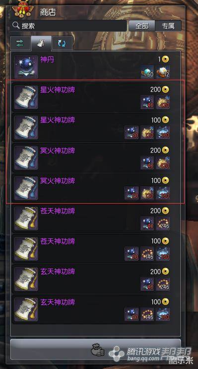 类似之前的兑换方式,这两种神功牌都可以通过 :