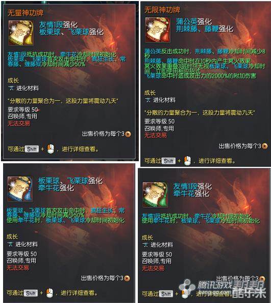 进化方式(各职业进化方式会有差异,此处列举的为召唤神功牌):