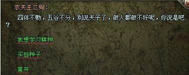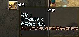 首先,耕种需要学习“耕种”技能,在延安的农夫王二狗(32,127)处,可以学习到“耕种”技能。
