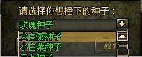 1级:大白菜种子、小白菜种子、三七种子、青稞种子、水蜜桃种子、毒药种子、玫瑰种子、蔷薇种子。