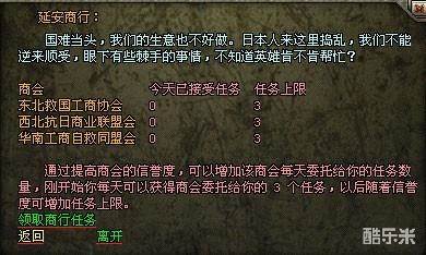 跑商是游戏中赚钱的一个比较快速的方法。玩家可以通过完成商行任务获得道具:物资卷,物资卷可以直接兑换成银元,也可以用物资卷购买商行物品,然后在将该物品贩卖给其他商行,通过物品的差价来赚取利润。抗战2总共有三个商行总会,按地域划分为东北,西北和华南商行,每张地图上都有商行NPC,每个商行总行每天可完成的任务是有上限的,随着您的商行信誉度的提升,每天可完成的任务也会提升。