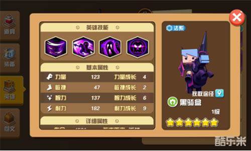 黑骑盒,马上的勇士,人物性别偏女生,身穿深紫色的盔甲和坐骑融为一身;六星的星级突发的攻击让目标不敢靠近