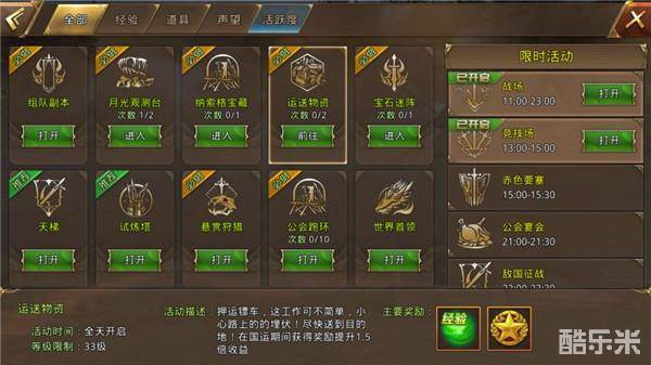 运送物资每日可进行两次,虽然活动时间是全天开启,但是玩家需要特别注意的是在国运期间运送物资可以获得1.5被收益,而且在国运期间与国家内其他玩家一同运送,可以有效地防止被其他国家的玩家攻击埋伏。