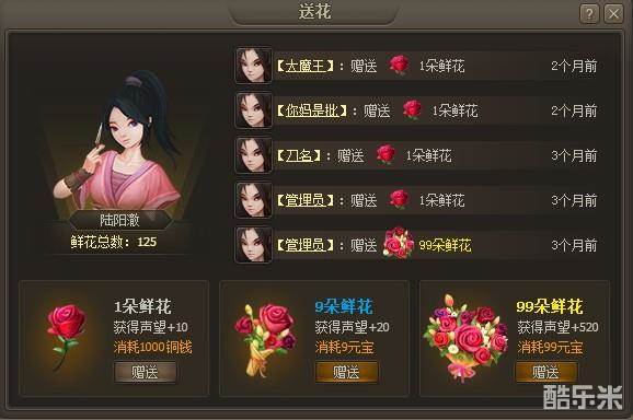 4、累计赠送10次99朵鲜花后,鲜花功能自动升级,送出鲜花所获得的声望,提高至999声望