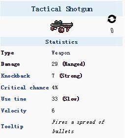 战术散弹枪非常适合用来对付成群的敌人,因为它可以发射分散的、高击退的,数量多的子弹。