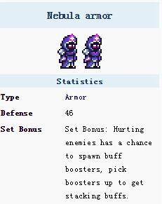 星云套装是1.3新增的套装,由头盔、胸甲和护腿构成,是1.3版本中最强的魔法套装。