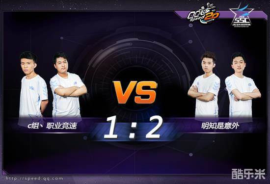 第四场比赛是c组丶职业竞速车队和明知是意外车队,带来的车队竞速赛冠军争夺战。c组丶职业竞速派出的选手是夏楚和余源鑫,明知是意外派出的则是张章松和孔云峰搭档。一共三个回合,第一大分c组艰难拿下,意外强顶压力连拿两个大分。纵观全局,意外的两位选手发挥更加稳定,c组这边没能发挥实力。恭喜明知是意外豪夺车队竞速冠军荣誉。