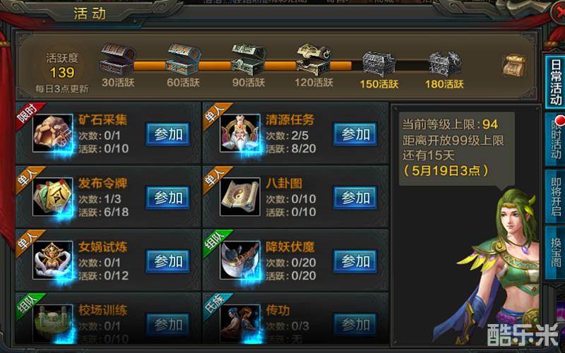随着新等级的开放,玩家们在面对更严峻的挑战时,将需要更强大的实力作为支撑。全新的五档装备保持了“神兽仙兵”的风格,造型光效也极为酷炫,且拥有比四档装备更加强大的属性值,更高档次的装备将助力玩家们享受更爽快的战斗。除此之外,玩家们可使用五档装备图鉴、九锡晶元对武器、衣服、披风部位的装备进行打造,通过五色石强化打造将获得更高的属性。值得一提的是,在宝石镶嵌上,将从原有镶嵌11级的基础上提升至13级,提升宝石镶嵌等级同样可以提高角色实力,使得装备评分排行榜迎来又一场激烈的竞争。