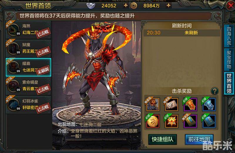 华夏大陆,人魔大战从未停止。随着新地图的开放,琅琊盆地的常山、七迷洞的耀嘉、复社祭司、复社大长老等一大波魔族Boss强势来袭,征战在华夏大陆的玩家们将再一次应战邪恶的魔族大军。更为惊喜的是,新场景中众多经典Boss更是携带五档装备图鉴、九锡晶元、BOSS战魂珠等众多奖励强势而来,90级以上的玩家可前往挑战。