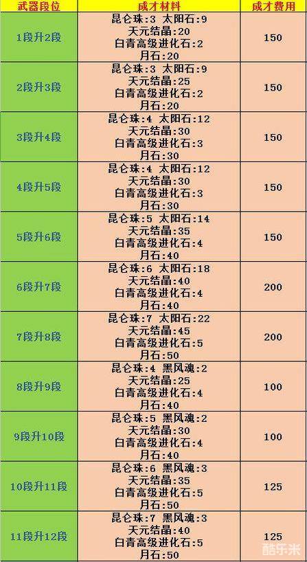 昆仑武器分三种成长方式,一种普通成才方式和两种添加祭品成长方式。目前每种成才方式所用的材料和金币都是天价,相比之下普通成长方式最便宜,但是普通成长方式8段以前有几率失败,不会掉段,8段以后失败会掉段。所以用生魂武器10段来兑换是很合算的。附带一张昆仑武器普通方式的成长树。不算其它材料就‘黑风魂’而言,我们区的拍卖价格每个在3000金左右,所以手里有S3武器10段的小伙伴们,不要在观望啦~~~~