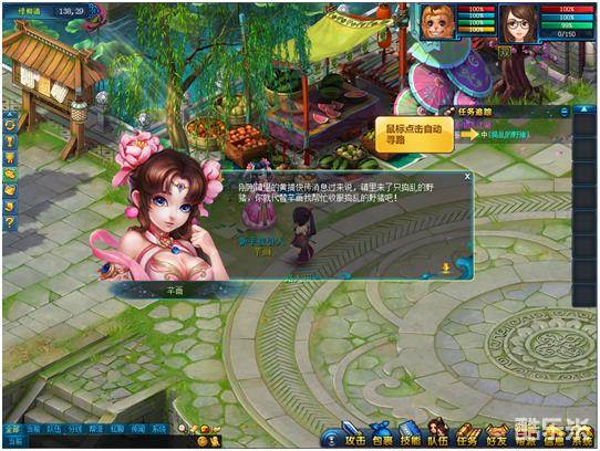 新建角色进入游戏后,自动领取新手指引任务,选择帮助“芊画”。完成“收服捣乱的野猪”后,将会获得萌萌哒宠物,并会领悟新手技能“御剑术”。点击右侧的“任务追踪”中的新手指引相关,体验《画江山》不一样的乐趣的同时、更增加了对《画江山》的了解。