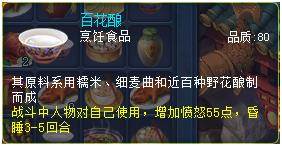 技能等级30~34级,消耗30点精力;(在上一等级基础上增加产出:百花酿)