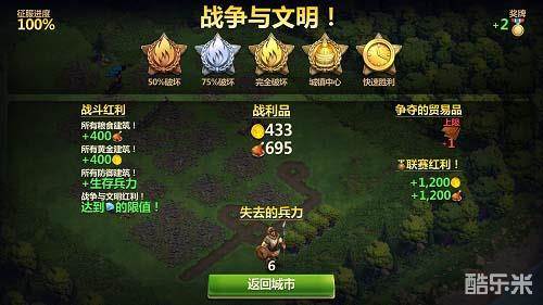 当玩家发展到青铜器时代时候便可以进行联机对战了,而联机对战则是玩家前中期获取资源的关键手段,因为在前期各位领主的防御都不是很强力,尽管获取的资源不多,但会增加联赛奖杯并获取联赛福利。所以在前期需要加强军事力量的发展,铁匠铺兵营等建筑重点培养,在战争中快速积累资源发展文明。