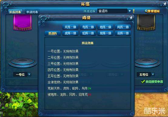 使用:玩家可以用快捷键Alt+T打开队伍界面,点击;阵法选择;选择自己学会的阵法