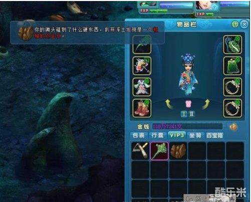 ③触发战斗:有一定几率在挖宝时触发战斗,黑心衙役、强盗、宝藏守卫(伤害并使其血线低于30%左右时会变为狂暴,伤害猛增且气血上限猛增),战斗胜利后可获得经验、潜能,一定金钱奖励,也有一定几率获得装备奖励。