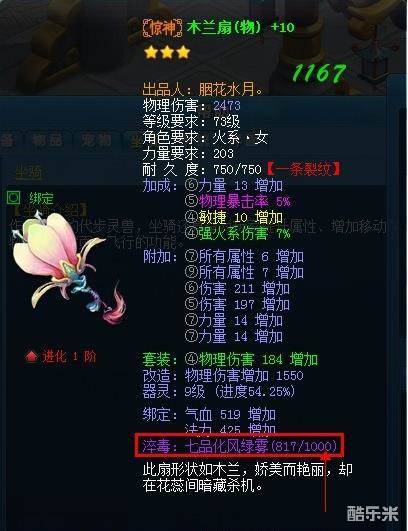 且淬毒品级代表其可作用最低等级,只能作用于不低于其等级的装备或宠物,如五品化风毒,只能作用不低于50级的装备或宠物。
