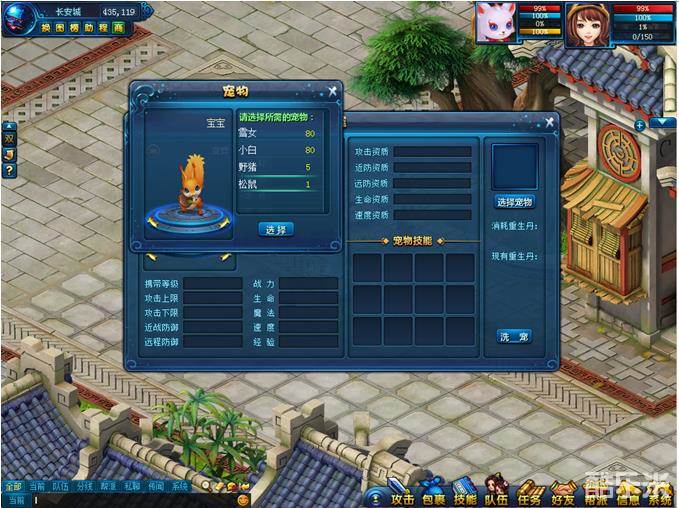 3.该面板显示您正在清洗的宠物各项能力与消耗的重生丹数量,确认完毕点击洗宠选项。
